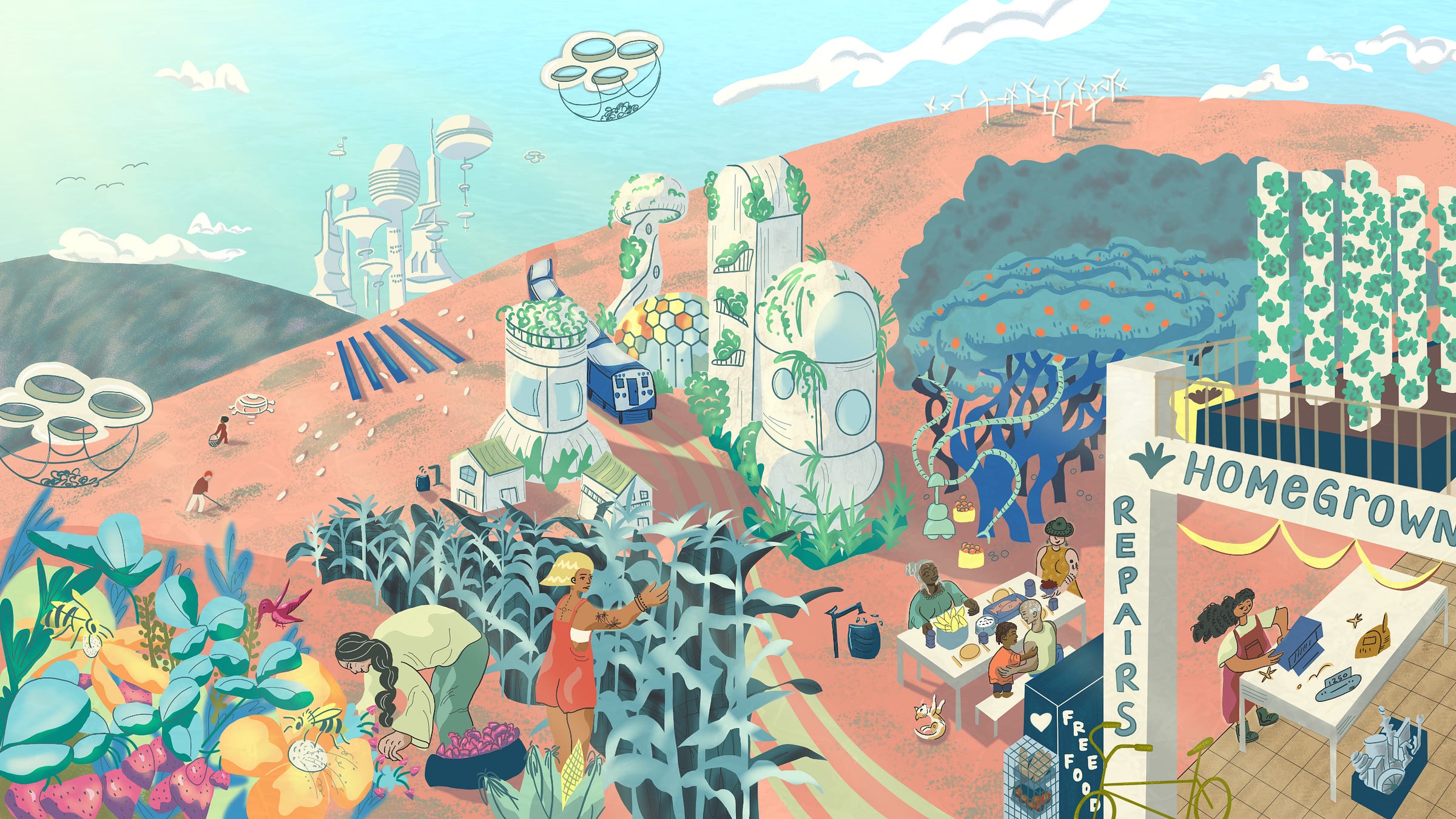 To us, that better future resembles a solarpunk utopia without waste, exploitation, or pollution… where humans, technology, and nature live together in harmony.