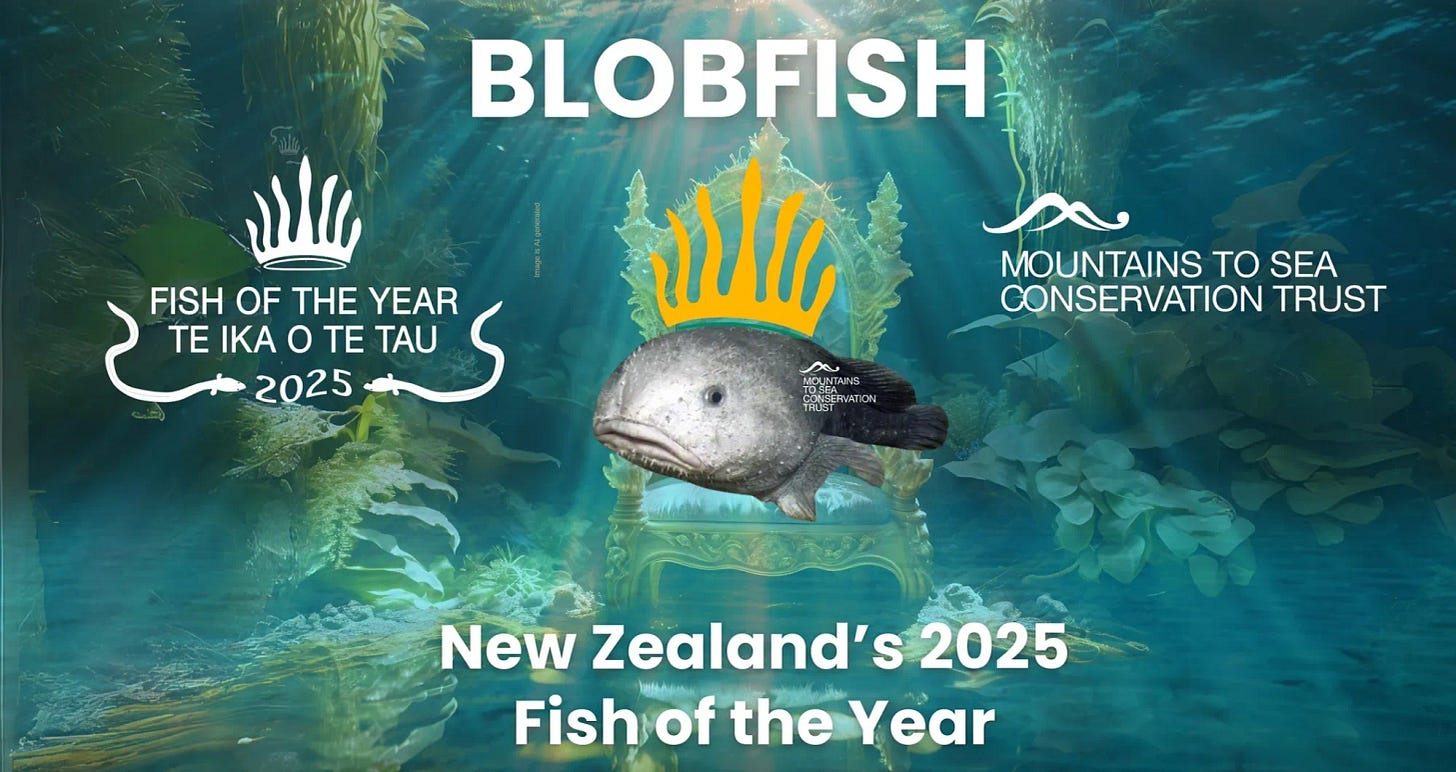 👑 Justice has come to the blobfish which was declared the world’s ugliest fish a decade ago but had a major comeback to just win New Zealand’s ‘Fish of the Year’, a contest from the Mountain to Sea conservation organization raising awareness and support for protecting marine ecosystems (Lianne Kolirin|CNN, Koh Ewe|BBC)