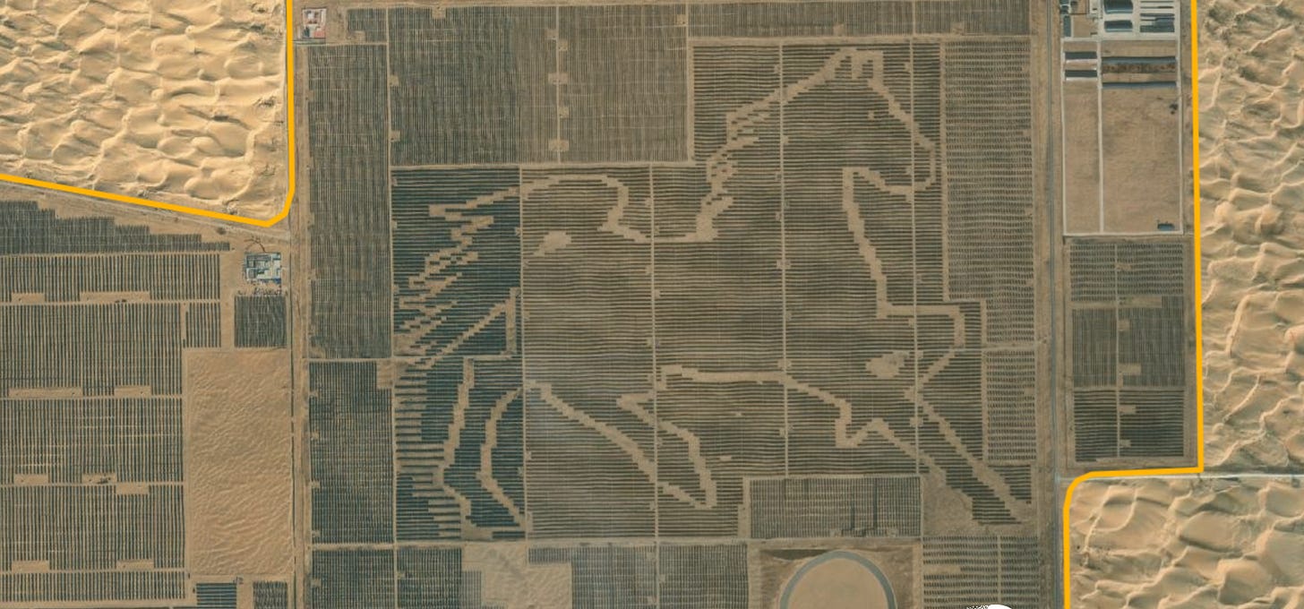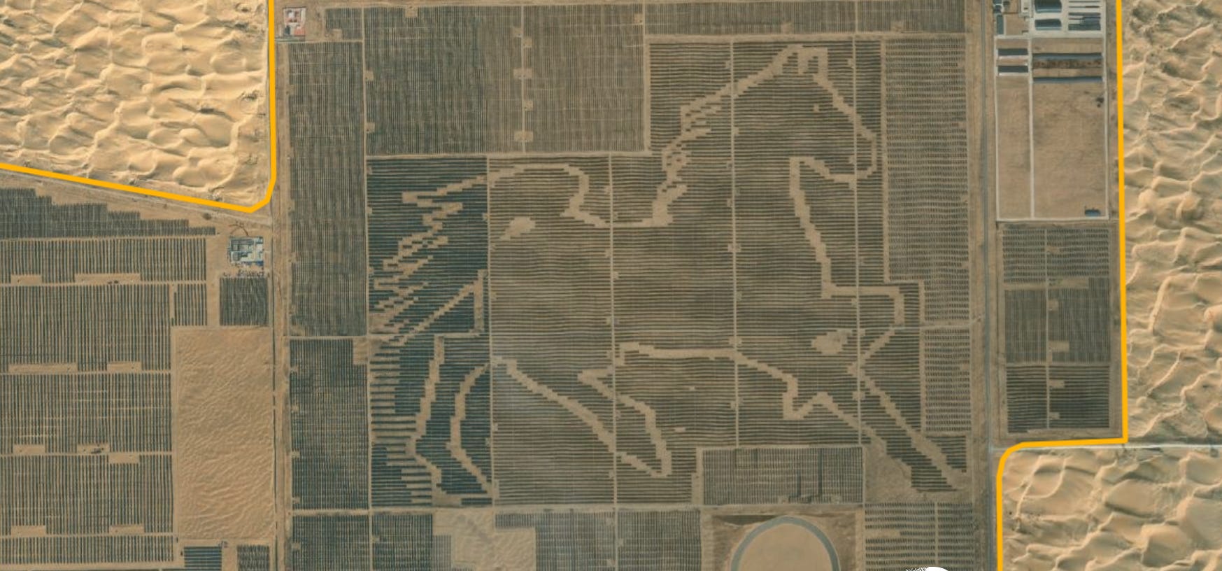 An open-access map launched by nonprofit TransitionZero found a series of weird and fun shapes built into giant solar farms like pandas, a pegasus, and a certain famous mouse while looking through satellite imagery in 183 countries to help track the fastest-growing energy source ever. (TransitionZero.org & Copernicus Sentinel-2)