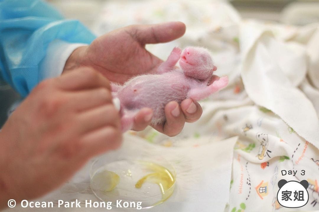 Ying Ying has become the oldest panda to give birth for the first time at 19 years old, birthing twins in Hong Kong who both weigh just 4 ounces and were naturally conceived which is often a challenge for pandas (Ocean Park Hong Kong)