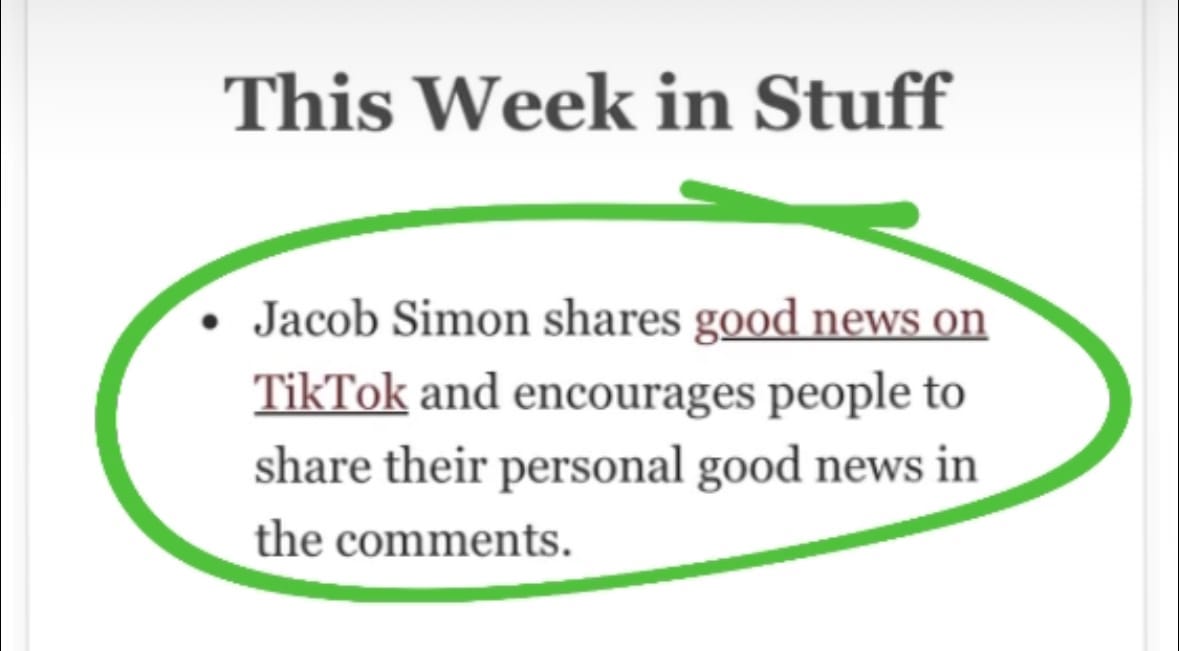 The good news videos I share on TikTok got a feature by the legendary brothers Hank and John Green in their newsletter (as pointed out to me by my brother)!