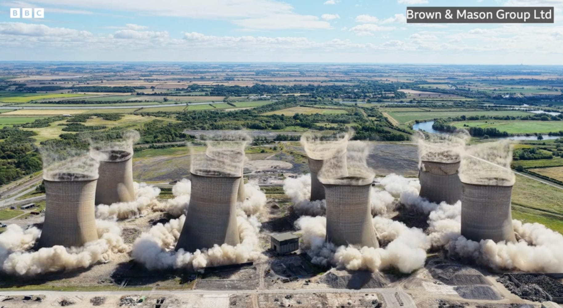 💣 Eight coal plant towers were destroyed in the biggest-ever simultaneous demolition at England’s retired Cottam Power Station, each 375 feet tall yet instantly crumbling in a beautiful moment symbolizing the end of the dirty fuel in the nation (BBC)