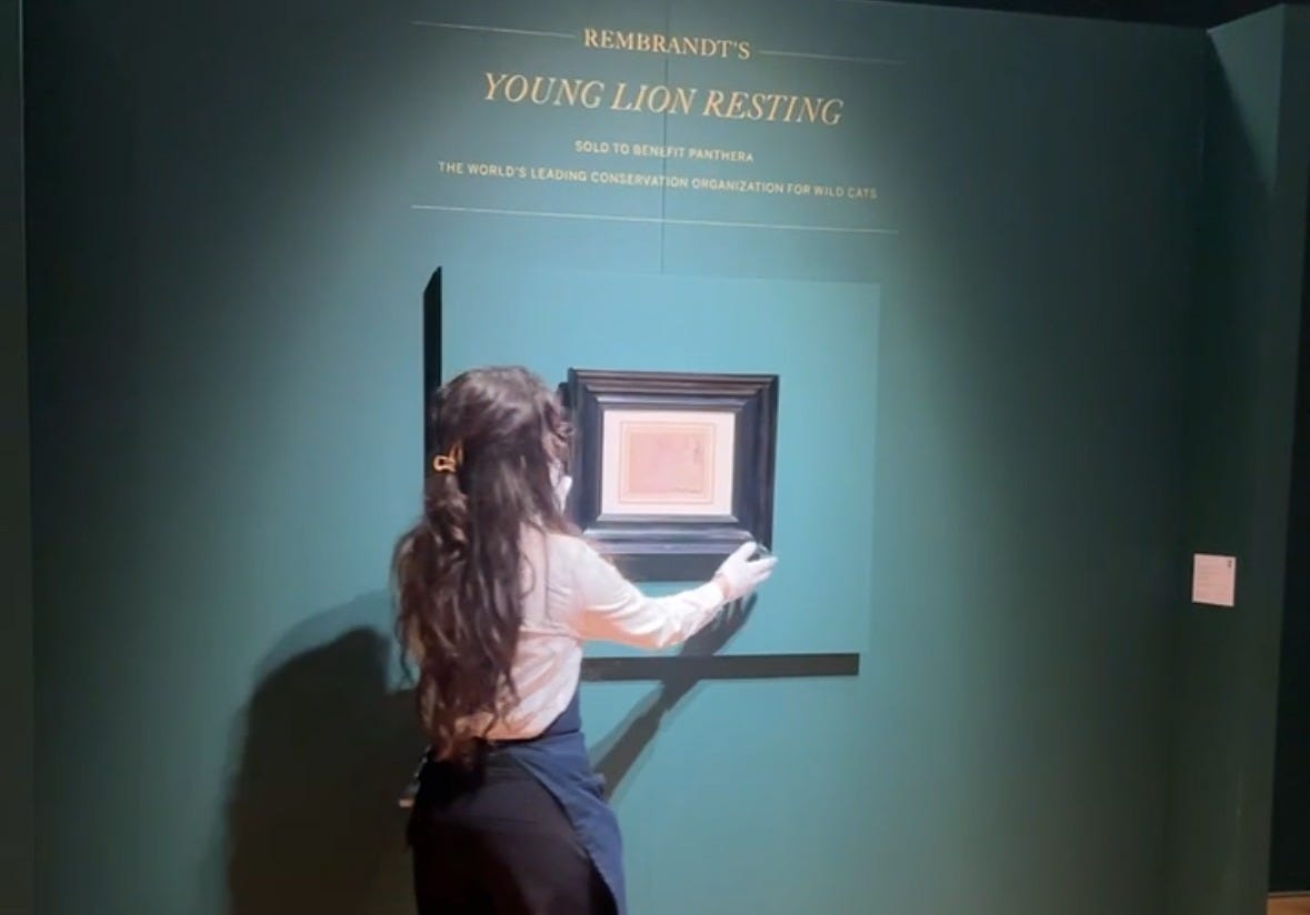 A $17.8 million Rembrandt masterpiece of a lion was up for auction at Sotheby’s in NY, and it vanished. The piece is called Young Lion Resting, and was likely inspired by a real lion. It was the only Rembrandt drawing of an animal still in private ownership, with the other 5 lion drawings in museums